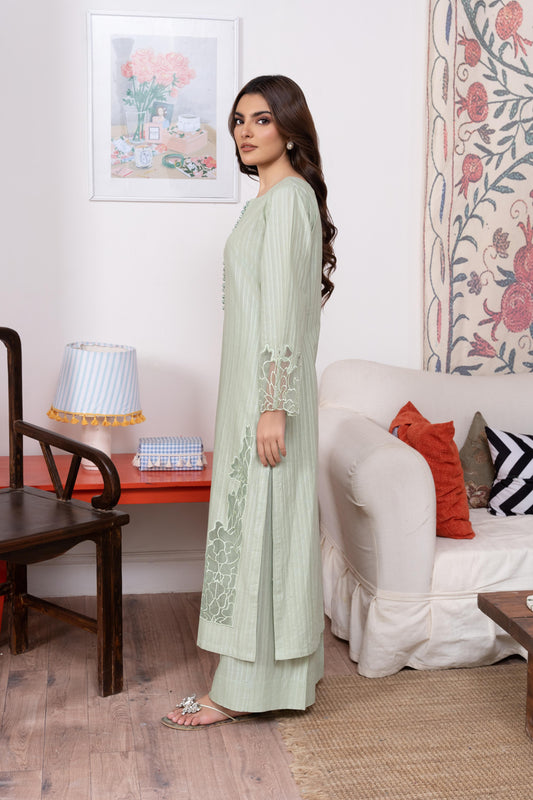 3PCs Mustard Yellow Chiffon Dress with Organza Dupatta and Intricate Handwork